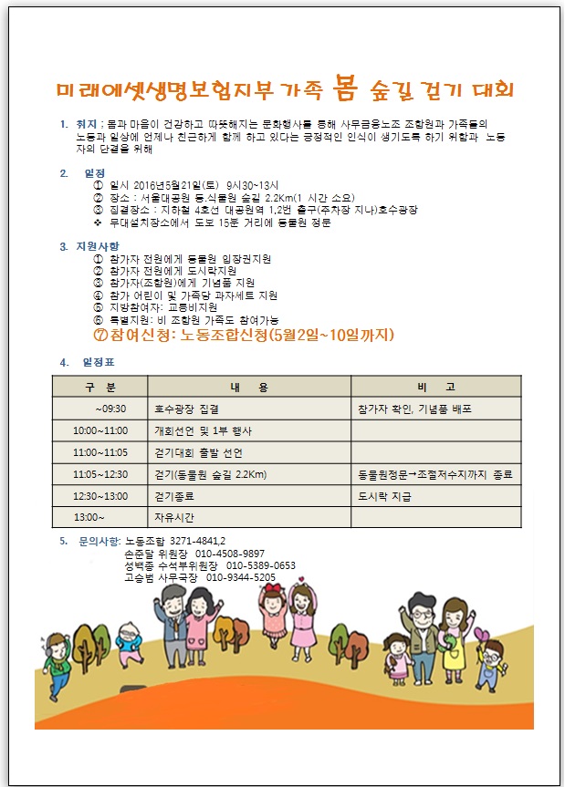 ¹Ì·¡¿¡¼Â»ý¸íº¸ÇèÁöºÎ °¡Á· º½ ½£±æ °È±â ´ëȸ