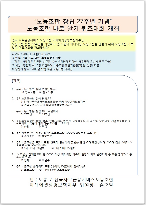 ³ëµ¿Á¶ÇÕ ¹Ù·Î¾Ë±â ÄûÁî´ëȸ °³ÃÖ